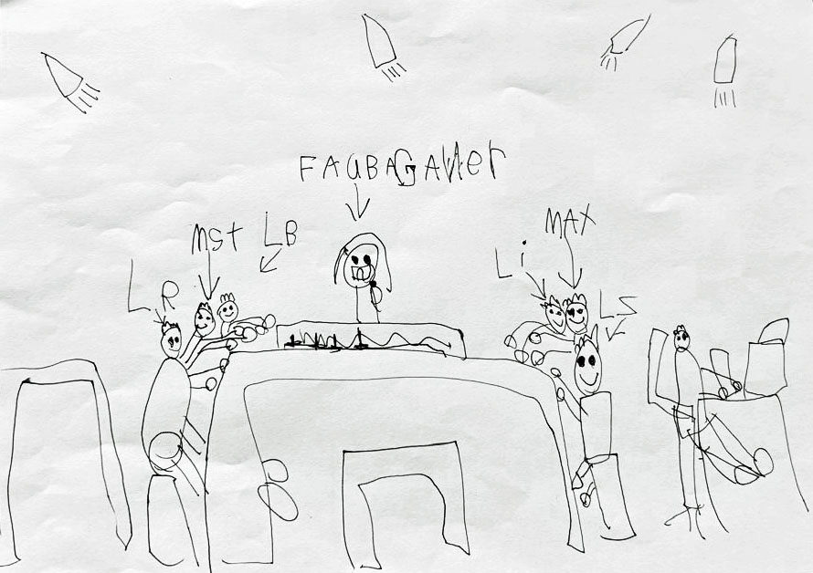 Einige Wochen später treffen sich die Eltern zu einem Treffen aller DetektivInnen. Sie tauschen aus über die Erfahrungen die sie gemacht haben. Natürlich endet der Abend mit einem gemütlichen Zusammensein.